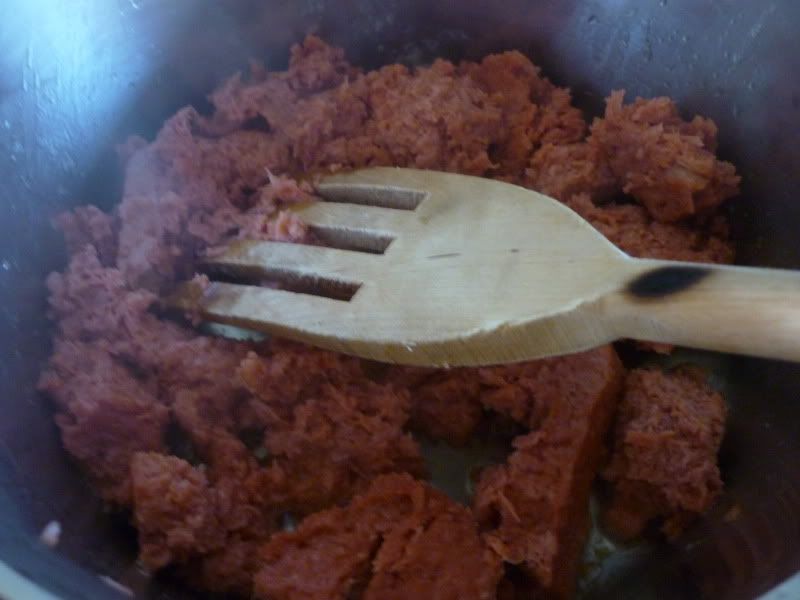 Man nehme vegetarisches Hackfleisch und brate es an: